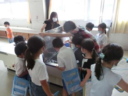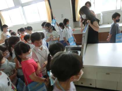 6月27日 その3 公開日 2022/06/27 更新日 2022/06/27 校長室から 1年生 学校探検です。 「みんなで見て回るところ」でしょう。 理科室で、コンロを見たり、流しを見たり、器具を見たりしていました。 エネルギッシュでした。 1年 特別支援学級