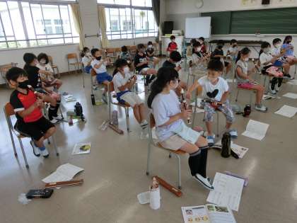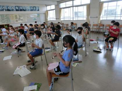 6月27日 その5 公開日 2022/06/27 更新日 2022/06/27 校長室から 3の1 音楽です。 ソプラノリコーダーの運指の勉強をしています。 「おにさんこちら」吹けますように。 校長 3年 特別支援学級