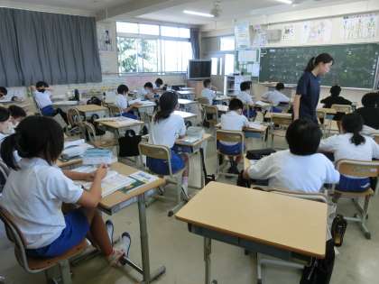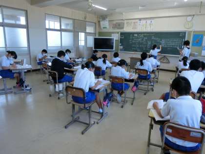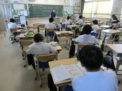 6の1 算数です。 少人数指導です。 分数のかけ算や割り算の完璧にしよう。