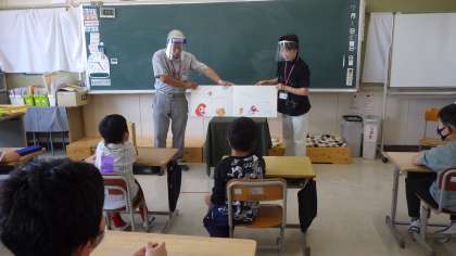 さとの声のみなさんによる読み聞かせです。 聞き入っています。