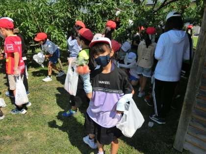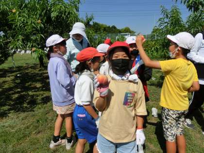 3年生 桃の収穫だよ。 いい色、いい大きさになったよ。