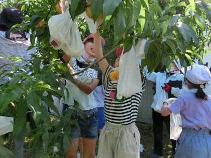 3年生 桃の収穫その2です。 見て見てとれたよ。