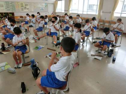 3の2 音楽です。 「ソラシ」の音を出そう。 ソプラノリコーダー。