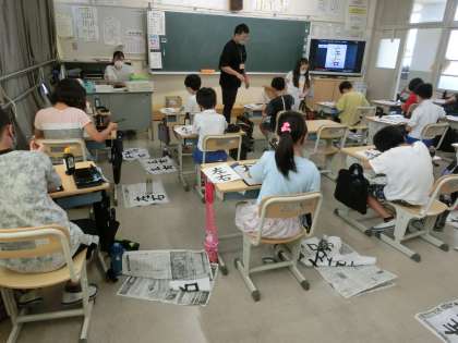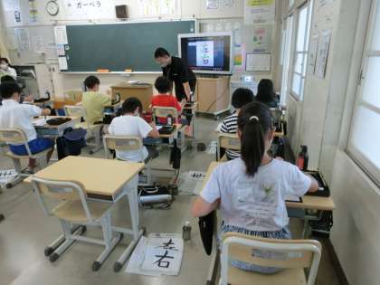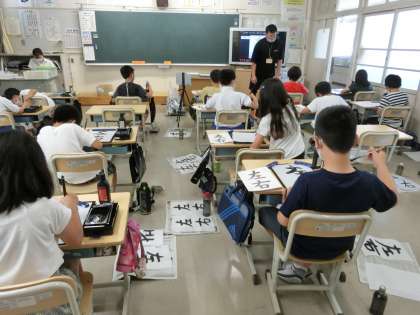 4の1 書写です。 「左右」似たような漢字ですが、 書き順も筆の払いの長さも違いますね。