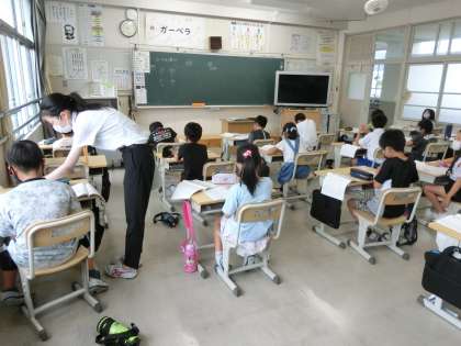 7月15日 その7 公開日 2022/07/15 更新日 2022/07/15 校長室から 4の1 国語です。 ローマ字の勉強をしています。 子音と母音の組み合わせ。 ローマ字が身につくと、また世界が広まりますね。 校長 4年