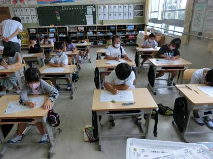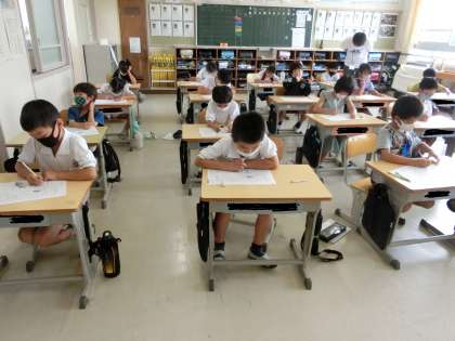 2の2 国語です。 「サツマイモの育て方」のテストです。 みんないい点めざそう。