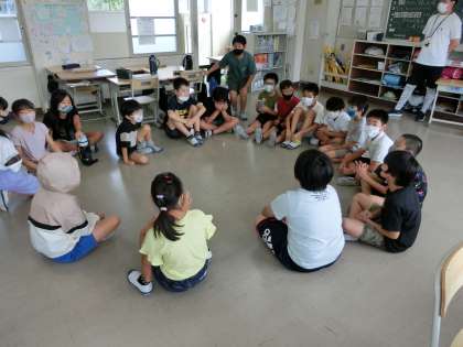 7月20日 その4 公開日 2022/07/20 更新日 2022/07/20 校長室から 4の2 誕生日会とお別れ会 輪になってみんなでゲームを楽しんでいます。 わずか一か月でしたが、来てくれてありがとう。 校長 4年 特別支援学級