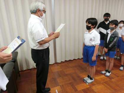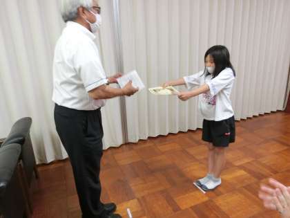 表彰は、ダブルダッチコンテストで素晴らしい成績を残した4年生の七歌さんの表彰伝達をしました。。