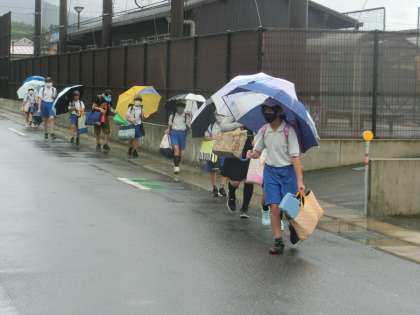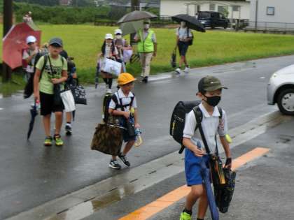 9月1日 その1 公開日 2022/09/01 更新日 2022/09/01 校長室から 久しぶりの登校です。 あいにくの雨となりましたが、学校に活気が戻ってきました。 今日は、地域の民生児童委員の方々も子どもたちの登校を見守り、「おはよう」と声をかけてくださいました。 校長 特色ある学校づくり 地域学校共働本部