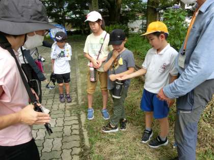 9月2日 その7 公開日 2022/09/02 更新日 2022/09/02 校長室から やまもも1・2組 自然観察の森から講師の先生に来ていただき、校内のに住んでいる生き物に触れました。 「だれか触って!」 「どれどれ見せて!」 「ヌマガエルが逃げた!」 「スライムみたい」 校長 特別支援学級