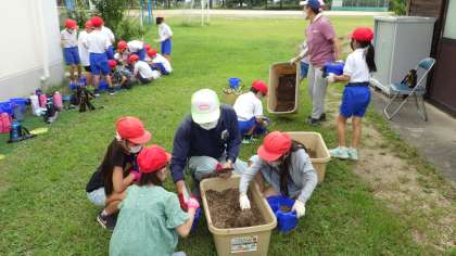 9月15日 その4 公開日 2022/09/15 更新日 2022/09/15 校長室から 2の1 だいこんの種まき 小さい種だね。 土の中に入れなくてもいいよ。 上においてちょっとだけ土をかぶせて、もみ殻をのせるよ。 校長 2年