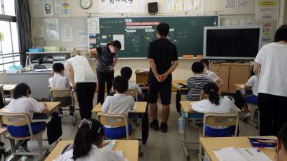 9月15日 その8 公開日 2022/09/15 更新日 2022/09/15 校長室から 4の1 算数です。 校内の研究授業として先生方で授業を見合いました。 6500÷250の計算だよ。 みんな、前の授業までに、「同じ数をかけてもわっても商は変わらない」ことを勉強しているよ。 校長 4年