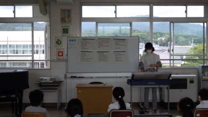 2の2 音楽です。 「空は今」の歌詞を覚えよう。 2年生も、歌声はとってもきれい!