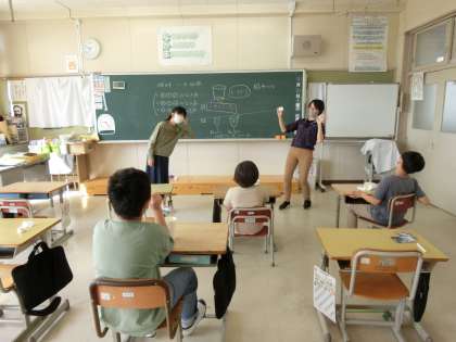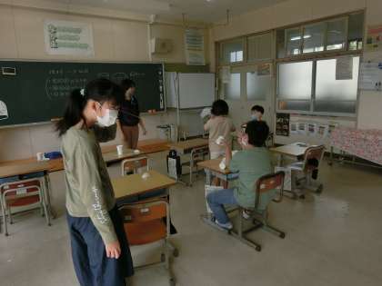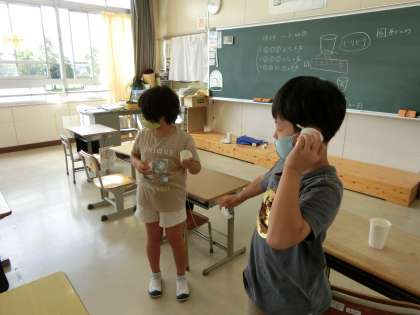 やまもも2組です。 音がよく伝わるには、どうするといいかな? 試してみよう。