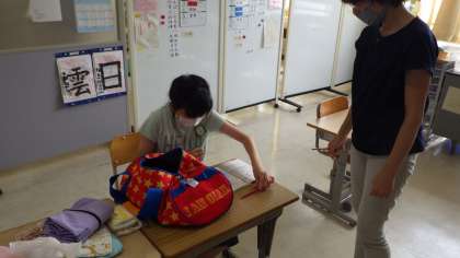 10月3日 その1 公開日 2022/10/04 更新日 2022/10/04 校長室から やまもも学級です。 交流で留守の子が多いです。 1組教室では、修学旅行の荷物の確認をしていますね。 確認したら、自分でバックに詰めないとね。 2組教室では、道徳です。 校長 特別支援学級