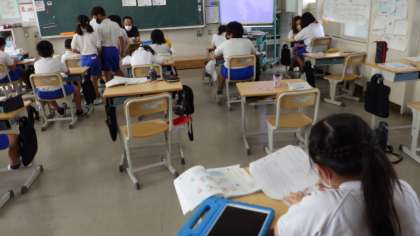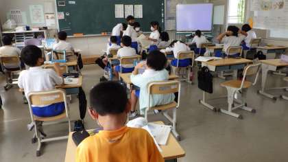 10月3日 その6 公開日 2022/10/04 更新日 2022/10/04 校長室から 4の1 国語です。 物語を創っています。 「あらすじ」「登場人物」「やま場」「せりふ」 どんな物語にしようかな。 校長 4年 特別支援学級