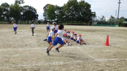 4年生 体育です。 50m走です。 記録が伸びますように!
