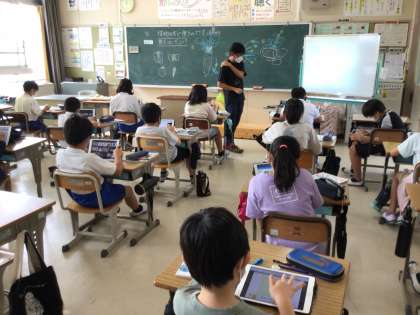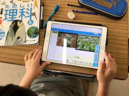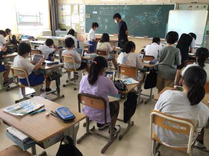 10月5日 その2 公開日 2022/10/05 更新日 2022/10/05 校長室から 5の1 理科です。 ピーマンやカボチャの種はどこにあるかわかります。 では、大根の種は、いずこに? タブレットで調べています。 校長 5年