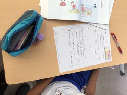 4の1 国語です。 物語をつくろう 登場人物、あらすじ、山場の設定…。