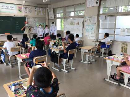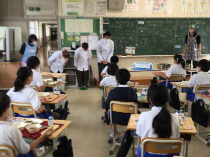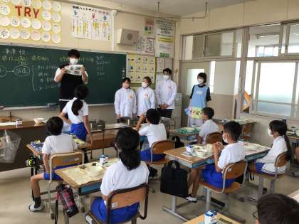 北部給食センターから、加納小学校のさつまいもを調理してくださった方たちが、見に来てくれたよ。
