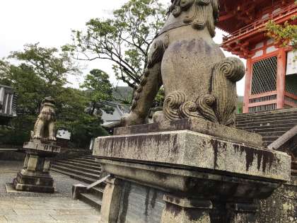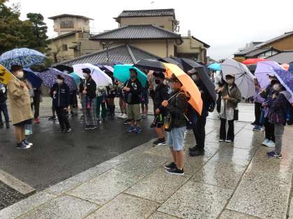 清水の仁王門前、ガイドさんの話が聞こえるように集合!