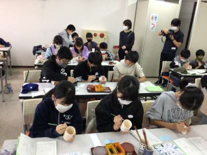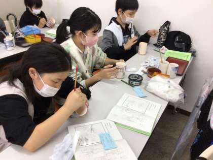 清水焼の絵付け体験です。 職人! 焼き上がり、楽しみですね。