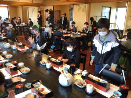 昼食です。 すてきな京料理です。 子どもたちも、小さなで歓声!