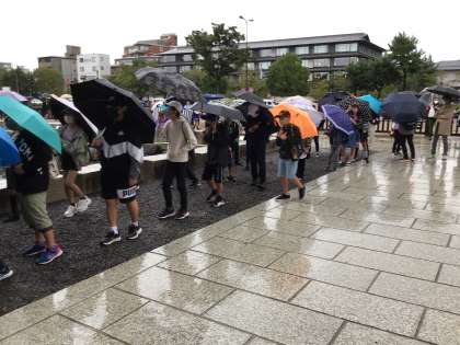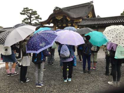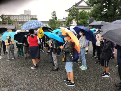 10月7日 その9 公開日 2022/10/07 更新日 2022/10/07 校長室から 二条城です。 ガイドさんの話を聞き逃すまいと、耳を澄ませています。 雨は、止んでませんが、弱くなってきました。 校長 6年 特別支援学級