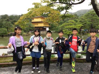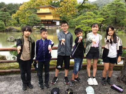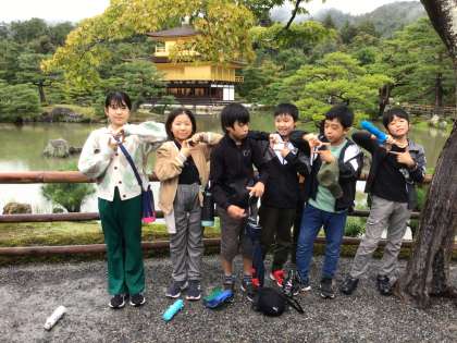 金閣寺をバックに班写真です。 1、2、3班です。