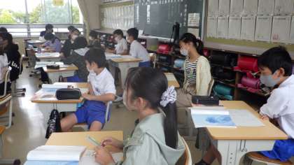 10月17日 その6 公開日 2022/10/17 更新日 2022/10/17 校長室から 6の1 国語です。 「海の命」 海の主のような堂々とした「クエ」に出会い、今までに感じたことのない思いが生じます。 海の主の威厳。 村一番の漁師に近づいていきます。 校長 6年