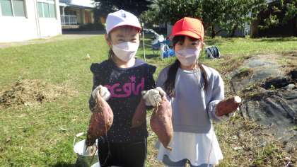 10月19日 その3 公開日 2022/10/19 更新日 2022/10/19 校長室から 1の1 生活です。 芋ほりです。 また、畑名人の皆さんに来ていただきました。 こんなにとれたよ! 校長 1年