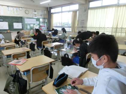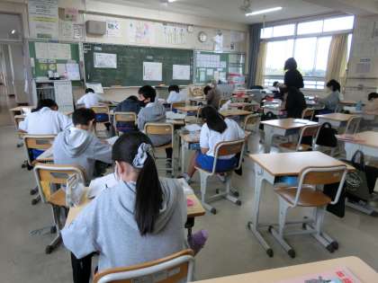 10月27日 その4 公開日 2022/10/27 更新日 2022/10/27 校長室から 6の1 算数です。 少人数で勉強しています。 図形の拡大や縮小 一つの点を決めて辺の長さを2倍とか1/2倍などにするとかきやすいよ。 校長 6年