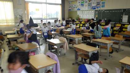 10月31日 その4 公開日 2022/10/31 更新日 2022/10/31 校長室から 1の1 お楽しみ会 ハロウィンパーティーで「宝探し」をしています。 「先生、宝見つけたよ」! 校長 1年 特別支援学級