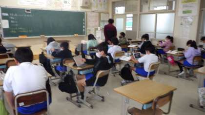 11月1日 その7 公開日 2022/11/01 更新日 2022/11/01 校長室から 5の1 社会です。 授業の後半にタブレット「キュビナ」で練習問題に取り組んでいます。 社会はどんな問題になっているのかなと覗いてみると、なるほど!です。 大事な内容の問題でした。 校長 5年