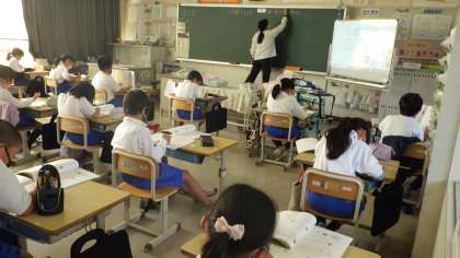 11月4日 その8 公開日 2022/11/04 更新日 2022/11/04 校長室から 3の2 算数です。 ノートには、問題が丁寧に書かれています。 感心します。 難しい問題ですね。 図を使って考えるとわかりやすいかな。 校長 3年