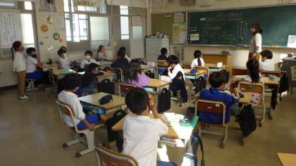 2の1 図工です。 お話の絵を描こう。 「大きく」「動いているようす」を描こうね!