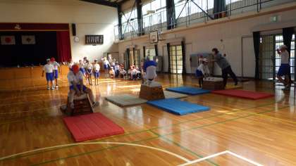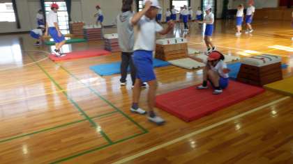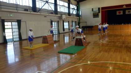 6の1 体育です。 台上前転に挑戦しているレーンもあります。 できるようになるとうれしいですね。