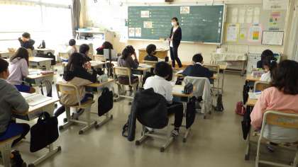 11月11日 その3 公開日 2022/11/11 更新日 2022/11/11 校長室から 4の1 道徳です。 「雨と との様」 たとえ殿様であってもこの門は開けられません。 決まりについて考えています。 校長 4年