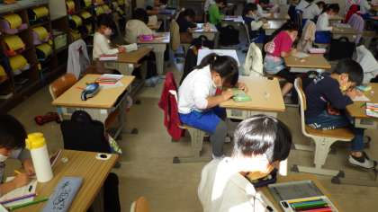 11月11日 その9 公開日 2022/11/11 更新日 2022/11/11 校長室から 1の1 2年生が開いてくれた「おもちゃ祭り」のお礼のメッセージをかいています。 楽しいお祭りをありがとう! 校長 1年