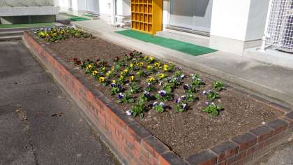 校務主任の大口先生が「仲間」さん前の花壇の新規植え変えをしてくれました。