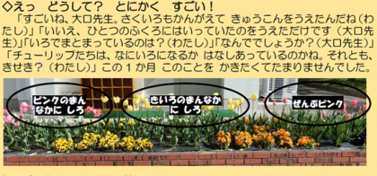 これは「チューリップは自分たちで咲く花の色を話し合っている?」