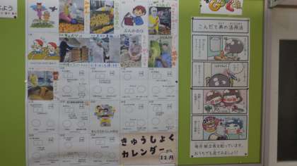 栄養教諭の重田先生が給食センターでの調理の様子を写真に撮って毎日掲示してくれています。