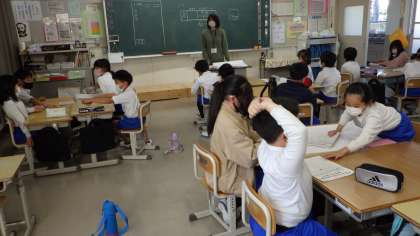 3の1 社会です。 メグリアの見学で見つけた秘密をまとめよう。 グループで模造紙にまとめるよ。