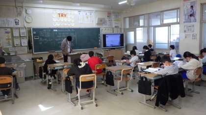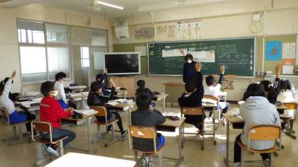 11月17日 その5 公開日 2022/11/17 更新日 2022/11/17 校長室から 5年生 算数です。 「百分率で表された割合の問題」 百分率を小数で表すといいよ。 少人数指導です。 校長 5年