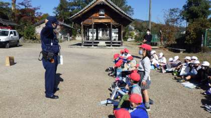 11月18日 その12 公開日 2022/11/18 更新日 2022/11/18 校長室から 2年生の町探検です。 駐在所の見学です。 質問に丁寧に答えてくれました。 警棒や手錠も触らせてくれたよ。 校長 2年