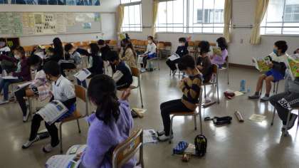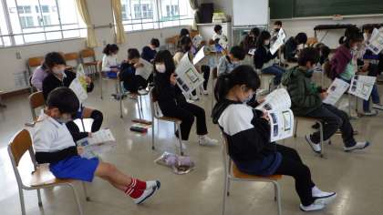 12月5日 その4 公開日 2022/12/05 更新日 2022/12/05 校長室から 3の1 音楽です。 「ふじ山」 歌詞を吟味しています。 「頭を雲の上に出し 四方の山を見下ろして 雷様を下に聞く 富士は日本一の山」 それぞれの情景を想像しています。 写真も教科書に載っているね。 そういえば、もう富士山が冠雪(山の上のほうの雪を冠ること)したそうですね。、 校長 3年 特別支援学級