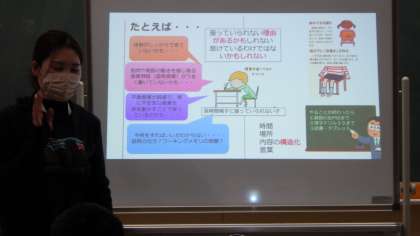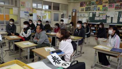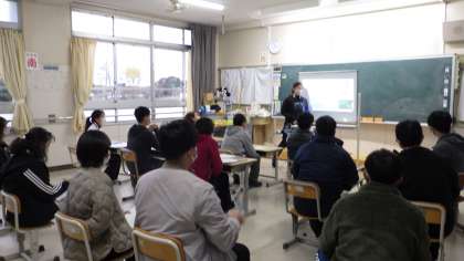 体育主任の岩附先生によるOJTです。 「どの子も楽しめる体育の提案」です。 児童の下校後です。