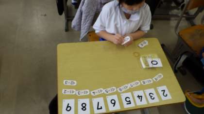 1の1 算数です。 計算の練習です。 計算カードの答えによって、仲間分けをしよう。