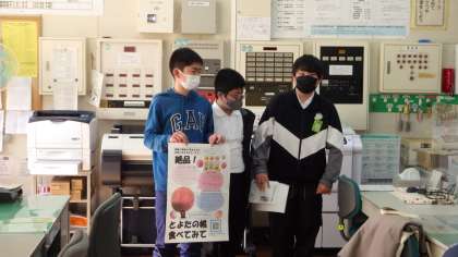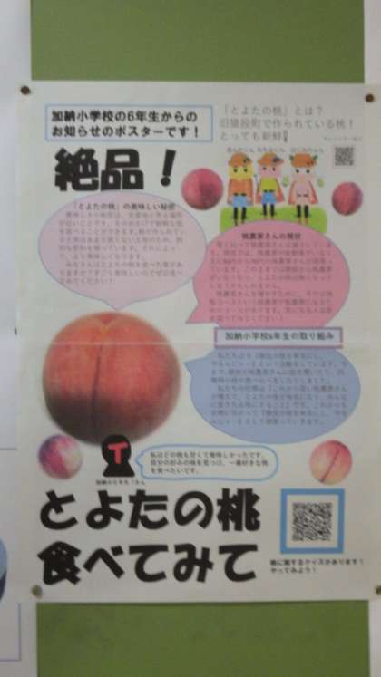 6の1 6年生が職員室に来て、桃のPRをしたよ。