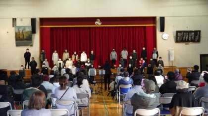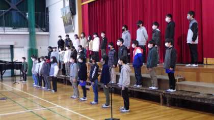 1月21日 その11 公開日 2023/01/21 更新日 2023/01/21 校長室から 全校合唱 「心を一つに! ひびけ 僕らの歌声」 体育館では6年生のみです。 他の学年はオンラインで各教室で歌っています。 校長 6年 特別支援学級 行事